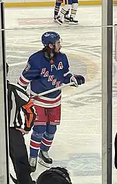Mika Zibanejad (Persian: میکا زیبانژاد; born 18 April 1993) is a Swedish professional ice hockey centre and alternate captain for the New York Rangers of the National Hockey League (NHL). Zibanejad was selected sixth overall in the 2011 NHL Entry Draft by the Ottawa Senators.[1] He made the Senators lineup out of training camp to start the 2011–12 season, but was returned to Djurgårdens IF in Sweden after scoring one point in nine NHL games with Ottawa. On 18 July 2016, after five seasons within the Senators organization, Zibanejad was traded to the Rangers.