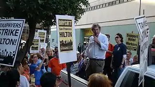 {{cite web}}: Missing or empty|title=(help) - Wallack, Todd (October 19, 2004) "Without reservation: As the hotel workers' lockout grinds on, Mike Casey keeps the respect of both union members and their bosses.". San Francisco Chronicle.