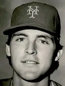 Fitzgerald was selected by New York Mets in the 6th round of the 1978 Major League Baseball Draft.[2] He made his major league debut with the New York Mets on September 13, 1983.[1] Fitzgerald hit a home run in his first major league at bat, becoming the 57th player in major league history to accomplish the feat.[3][4] In 1984, he led National League catchers in range factor and fielding percentage, becoming only the fourth catcher in major league history to win a fielding title in his rookie year.[5][6] Fitzgerald was selected as the catcher for the 1984 Baseball Digest Rookie All-Star team, and for the 1984 Topps All-Star Rookie Roster.[7]