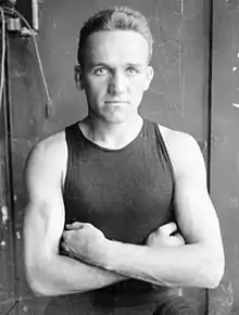 Michael J. Gibbons (July 20, 1887 – August 31, 1956) was an American boxer from 1908 to 1922. The brother of heavyweight Tommy Gibbons, he claimed Middleweight Champion of the World status in 1909 following Stanley Ketchel's murder. Although he never won the title, Gibbons is regarded as one of the all-time best welter and middleweight boxers by historians. Statistical boxing website BoxRec lists Gibbons as the #18 ranked middleweight of all time, while The Ring Magazine founder Nat Fleischer placed him at #9.[2] The International Boxing Research Organization rates Gibbons as the 17th best middleweight ever and boxing historian Bert Sugar placed him 92nd in his Top 100 Fighters catalogue.[3][4] Gibbons retired due to deteriorating vision. Following his boxing career he entered business in his native St. Paul, and became a member of the Minnesota Athletic Commission. Gibbons was elected to the Ring Magazine Hall of Fame in 1958, the International Boxing Hall of Fame in 1992, the World Boxing Hall of Fame in 1997, and the Minnesota Boxing Hall of Fame in 2010.[5]