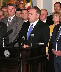 ![]() President Pro Tem Mike Morgan at a May 15, 2007 press conference. | |