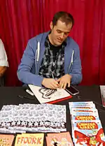Mike Riley (born October 22, 1975) is an American cartoonist and comic book writer currently residing in Baltimore, Maryland. He is best known as the creator of the single-panel webcomic I Taste Sound and the comic series Irregulordz.