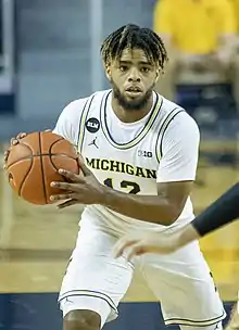 On April 10, 2020, Smith announced that he would graduate and transfer to Michigan for his final season. He was attracted to the program because of head coach Juwan Howard.[21] Smith was ranked the 11th best graduate transfer according to ESPN and chose the Wolverines over offers from Gonzaga, Arizona and Seton Hall.[22] In his debut for Michigan on November 25, Smith scored 16 points and had eight assists in a 96–82 win against Bowling Green.[23] On March 7, 2021, Smith scored 11 points and seven assists in a 64–70 loss to Michigan State. With his seven assists he surpassed 500 career assists.[24][25] On March 12, Michigan opened its 2021 Big Ten men's basketball tournament play with a 79–66 victory over Maryland in the quarterfinals. Michigan was led by Smith with 18 points and set a Big Ten Tournament record with 15 assists.[26] He averaged 9 points and 5.3 assists per game, helping lead the team to the Elite Eight of the NCAA Tournament. On April 7, 2021, Smith declared for the 2021 NBA draft, forgoing the additional season of eligibility the NCAA granted in light of the COVID-19 pandemic.[27]