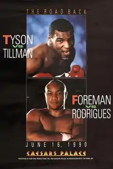 In his previous fight, Mike Tyson had lost his undisputed heavyweight title after being knocked out in the tenth round by 42–1 underdog James "Buster" Douglas in one of the biggest upsets in sports history. After a failed protest, Tyson's promoter Don King attempted to quickly gain a rematch with Douglas, but Douglas turned down King's offer and instead chose to face the number one contender Evander Holyfield.[1] Left with little choice, Tyson was forced down the comeback trail. Former welterweight and middleweight champion Thomas Hearns[2] and former heavyweight contender Renaldo Snipes[3] emerged as possible opponents for Tyson, but it was announced on May 1 that Tyson would face 1984 Olympic Gold Medalist Henry Tillman, who had twice defeated Tyson as an amateur, effectively costing Tyson a spot on the U.S. Olympic team.[4] In spite of his successful amateur career, Tillman's professional career was unimpressive, facing mostly unknowns and losing his only high-profile fight to Evander Holyfield by way of knockout. Tillman entered the fight as a 25–1 underdog and was given virtually no chance of defeating Tyson. The Tyson–Tillman fight was the second fight of a doubleheader event that also featured George Foreman taking on Adilson Rodrigues.