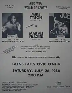 Mike Tyson vs. Marvis Frazier was a professional boxing match contested on July 26, 1986. The fight took place at the Glens Falls Civic Center in Glens Falls, New York, USA.