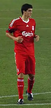 In August 2007, Premier League club Liverpool confirmed that the 18-year-old San José had joined on a three-year contract for a fee reported as €400,000.[5] He believed he had a greater chance of top-flight football via Liverpool's reserves than by accepting what he saw as an unconvincing offer of bypassing Athletic's third team to play for their B team in the Segunda División B.[6] Over the next two seasons, he played regularly for Liverpool Reserves,[7] and helped them win the 2007–08 Premier Reserve League title.[8] He frequently trained with the first team,[6] but the closest he came to playing for them was in February 2008 as an unused substitute against Chelsea.[4]