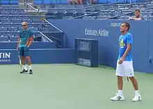 Youzhny started the 2008 season by defeating world number two Rafael Nadal in under an hour at the final of the Chennai Open in India.[36] However, the scoreline did not reflect the circumstances, Nadal's semi-final finished mere hours beforehand and he had little rest. Youzhny admitted as much, and said; "This victory is a present from Rafael", but Nadal responded by saying "I was a bit tired, but I must admit Mikhail played unbelievable tennis and deserved to win. There is nothing wrong with me."[37] As the 14th-seed at the Australian Open Youzhny reached his first quarterfinals there by defeating world number four Nikolay Davydenko in straight sets.[36] However, in the quarterfinals he lost to unseeded Frenchman Jo-Wilfried Tsonga, ranked world number thirty-eight and the eventual runner-up, in three sets.[38] At the Open 13 in Marseille, France, Youzhny reached the quarterfinals, losing in straight sets to world number seventeen Marcos Baghdatis.[36] At the Miami Masters, Youzhny was 4–5 down with Spain's Nicolás Almagro serving in the final set, he hit a relatively easy return into the net.[39] He gestured angrily towards his own temple, and then hit his head strongly with the edge of frame of his tennis racket three times, drawing blood.[39] Despite this—and after receiving medical attention—he won the next seven points, taking the tiebreaker and also the match.[39] In his next match, he lost to Serbia's Janko Tipsarevic.[36] His bad form continued into the clay season, but Youzhny, as the 15th-seed, managed to reach the third round of the French Open, losing to world number twenty-three Fernando Verdasco from Spain in four sets.[36] At Wimbledon Youzhny was seeded 17th, and reached the fourth round by defeating 16th-seed Radek Štěpánek in a five-setter in the third round.[36] He lost to 2nd-seed and eventual champion Rafael Nadal in the fourth round.[36] At his next tournament, the Allianz Suisse Open Gstaad in Switzerland, Youzhny reached his last quarterfinals of the season and lost to Spain's Guillermo Garcia-Lopez.[36] At the Summer Olympics in Beijing, China, Youzhny lost in the third round to world number three Novak Djokovic.[36] Youzhny withdrew from the US Open due to viral illness, making his first withdrawal from a grand slam after appearing in 23 in a row.[15] Youzhny continued his poor results, reaching the first and second round in all the remaining tournaments, with one exception in Tokyo, Japan.[36] He ended the year with a 28–22 win–loss record,[36] and with an end of year ranking of 33.[6]