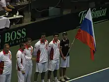 Youzhny played his first Davis Cup match in the World Group first round against Belgium in a dead rubber.[77] He defeated Olivier Rochus in the fourth match.[77] Youzhny would go on to lose four matches in a row.[77] At the 2002 World Group final, Youzhny played the deciding match against Paul-Henri Mathieu and came back from two sets down to win.[78] In 2003, in Russia's first round match against Belarus, Youzhny played the fifth and decisive match and lost to Vladimir Voltchkov.[77] In the 2006 World Group Youzhny participated in the first round, quarterfinals and in the semifinals, but did not play in the final against Argentina.[77] However, he did participate in the 2007 final against the United States, but he lost in the second match to James Blake in four sets.[77] The defeat gave the United States a 2–0 lead over Russia, with the United States winning the final 4–1.[79] At the 2008 World Group Youzhny only participated in the first round against Serbia, winning his singles match against Nenad Zimonjić.[77] In the third match he partnered with Dmitry Tursunov against Novak Djokovic and Nenad Zimonjić but lost.[77] However, despite his doubles loss, Russia advanced and won 3–2.[77]