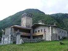 He was buried in his home village of Mestia, where a museum dedicated to him now stands.[7] Khergiani's fame was such that after his death, songs were composed that described Dali, the Svan cliff-dwelling goddess of the hunt, in mourning for him.[8] In 1971, the Khergiani Rock Climbing Prize was established in the Soviet Union in his honor, and several peaks and climbing routes have been named for him.