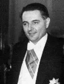 Miklós Nyárádi (21 May 1905 – 12 May 1976) was a Hungarian politician, who served as Minister of Finance between 1947 and 1948. In November 1948 he did not return home from an official visit abroad. He settled down in the United States around 1949.
