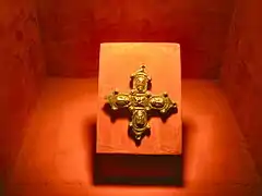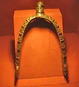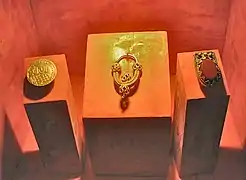 Very typical of Great Moravian metalworking is the hollow globular metal buttons or gombik that were used, often in pairs, to hold a cloak or garment around the neck, They occur with both male and female burials and were almost certainly made in local workshops.[21]