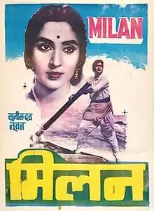 Milan is a 1967 Hindi film directed by Adurthi Subba Rao.[1] It was a remake of his hit Telugu film Mooga Manasulu (1963) and was produced by L. V. Prasad.[2] The film stars Sunil Dutt, Nutan, Jamuna (reprising her role from the original Telugu version), Pran and Deven Varma. The award-winning and very popular music was composed by the duo Laxmikant Pyarelal. It is among the earliest films to deal with the theme of reincarnation.