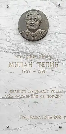 ![]() Plaque in Banja Luka commemorating people's hero Milan Tepić | |
