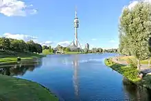 In Milbertshofen-Am Hart is the Olympiapark (with the 291-metre-high Olympiaturm Munich's tallest building, the Olympiahalle, Olympiastadion, Erinnerungsort Olympia-Attentat, Sea Life München, Olympic Village) and the BMW Museums (BMW Welt, BMW Group Classic, BMW Museum and BMW Tower). Other notable buildings include BMW FIZ, Knorr-Bremse headquarter, Bayerisches Landesamt für Verfassungsschutz, Euro-Industriepark, Mira shopping center and Gymnasium München Nord. Green Areas include: Petuelpark, Hartelholz and Panzerwiese. The Olympiapark is the location of the Zentrale Hochschulsportanlage, Spartan Race Sprint as well as Start- and Finish location of the Munich Marathon and Start of the Wings for Life World Run Munich.