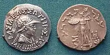 Menander I Soter (Ancient Greek: Μένανδρος Σωτήρ, romanized: Ménandros Sōtḗr, Menander the Saviour; Pali: Milinda), was a Greco-Bactrian and later Indo-Greek King (reigned c. 165/155[4] –130 BC) who administered a large territory in the Northwestern regions of the Indian Subcontinent from his capital at Sagala. Menander is noted for having become a patron and convert to Greco-Buddhism and he is widely regarded as the greatest of the Indo-Greek kings.[5]