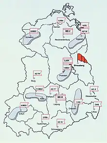 | Radio technical battalion 5 (FuTB-5)[14] | Friedrich Dethloff (March 1, 1989) | Basepohl (53.743370°N 12.945890°E) |