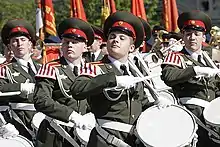 The Cadet Band of the Institute of Military Band Conductors (Russian: Оркестр Курсантов Военного Института) is a military marching band and instrumental ensemble in the Ministry of Defense of Russia (MOD) and the larger Russian Armed Forces. The band has repeatedly performed at international competitions and festivals, in various television and radio broadcasts.[12] The university band team is the affiliated marching band of the university, being the equivalent of the Band of the Royal Military College of Canada. It is a diploma winner of the review competition of the regular military bands of Moscow Military District. It plays an important role in the educational activities of the university. It annually participates in the Moscow Victory Day Parade and the parade dedicated to 1941 October Revolution Parade. It often performs at central venues in Moscow, such as the Great Hall of the Moscow Conservatory, the Central Academic Theater of the Russian Army, and the Central House of Officers of the Russian Army.[13]