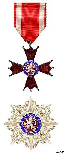 The Military Order of the White Lion (Czech: Vojenský řád Bílého lva „Za vítězství“), also known as the Military Order of the White Lion "For Victory", was an award established on 9 February 1945 to reward military merit, either personal acts of bravery or leadership. [1]