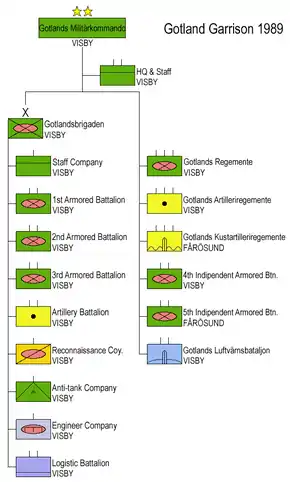 - MKG - Gotland Military Command in Visby had operational control of the brigade and independent battalions in case of war.