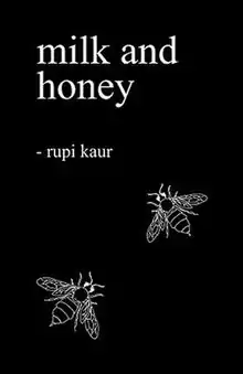 Milk and Honey (stylized in all lowercase as "milk and honey") is an Indian-Canadian collection of both abstract fiction and non-fiction poetry and prose by Rupi Kaur. The collection's themes feature aspects of survival, feminism and relationships, and is divided into four sections, with each section serving a different purpose and relevance to Kaur’s personal experiences. The sections further explore the themes of violence, abuse, love, loss, and femininity, accompanied by simple line art illustrations.[1] These sections are titled "the hurting", "the loving", "the breaking" and "the healing".[2] Kaur has cited her cultural background as an inspiration for the book's style, as well as an attempt to make the book more accessible to a wide demographic or readers.[3] The book's simplistic style and themes have drawn forth some negative criticism and alleged rumours about Kaur herself.[4] Critics have sometimes referred to Kaur's work as "Instapoetry" due to Kaur's usage of social media platform Instagram to market her poems and illustrations.[5]