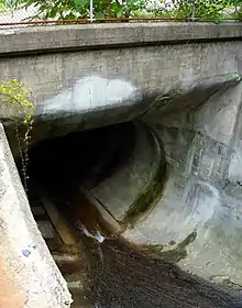 The creek passes through the middle of the Erie Zoo, where several bridges span the creek. One of the bridges is designed to act as a "drift catcher", preventing large debris from entering the tube further downstream.[5] The drift catcher is also used by the zoo's train to cross over Mill Creek.[5]