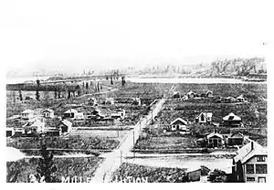 Not wanting to buy into either of these rival townsites, the Grand Trunk Pacific began negotiating to purchase the First Nations property, but were continually foiled by Central Fort George's promoter, George Hammond, who invited the Chief of Fort George "to tea" on two separate occasions to make sure the Chief knew just what the land was worth to the railway and advised him not to sell.[3] As the negotiations dragged on, an agent for Charles Millar, then the owner of the BC Express Company, successfully made a deal with the Chief and their spokesman, Father Nicolas Coccola. When the railway learned that yet another townsite was going to be built on the very land they wanted the most they appealed to Ottawa and Millar's deal was negated. In the end the GTP settled out of court and sold Millar 200 acres (0.81 km2) of the property for $59,296,[4] which Millar subdivided and promoted in 1914.[5] It has been theorized that the railway resented having to sell the land to Millar and struck back by building low-level bridges on the upper Fraser River, effectively blocking one of Millar's sternwheelers, the BC Express, from working on her profitable route from Fort George to Tête Jaune Cache.[6]