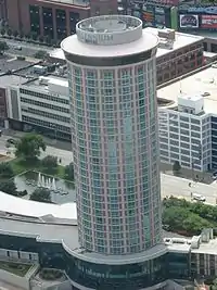 ![]() Tower I of the Millennium Hotel complex as seen from the observation deck of the Gateway Arch. | |