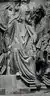 An angel (personification of the Orthodox Church) supporting the cross and blessing a kneeling woman in Russian national costume, leaning on a shield with the coat of arms and the date "1862". The figures are made by Ivan Schroeder, the cross was made according to the drawing by Viktor Hartmann. This group is installed at the top of the orb (symbol of the monarch's power), covered with a cross pattern. The orb is surrounded by an inscription: "To the Millennium of the Russian state, which happened in the prosperous reign of Emperor Alexander II, year 1862"