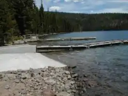 Miller Lake is also used for swimming and non-motorized boating.[5] Hiking trails in the vicinity provide access to the Mount Thielsen Wilderness and the Pacific Crest Trail.[4] Digit Point Campground at the lake has 64 individual camping sites with access to picnic tables, potable water, and toilets.[5] Mosquito infestations may require repellent or headnets.[6][7]