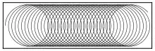 In this approach, the tool travels along a gradually evolving spiral path. The spiral starts at the center of the pocket to be machined and the tool gradually moves towards the pocket boundary. The direction of the tool path changes progressively and local acceleration and deceleration of the tool are minimized. This reduces tool wear.[15]