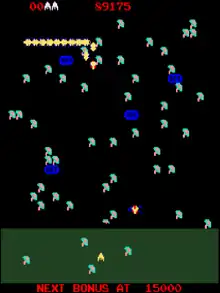 At regular intervals, the player enters a bonus level with a swarm of enemies (bees, dragonflies, etc.) instead of the usual millipede. Each enemy awards increasing points, up to a maximum of 1,000 points per enemy. The attack ends when either the entire swarm has passed or the player loses a life. Also, at intervals new mushrooms will grow on the field while others disappear, in a pattern similar to Conway's Game of Life.