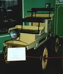 Millot vehicle in Museum of Moscow, with rear facing front seats, chain and flat steering wheel