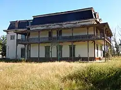 It is a three-story 32-room adobe house on a rise near Cimarron Creek on the edge of Springer. It is made of adobe, has a metal mansard roof with four chimneys protruding above.[2]