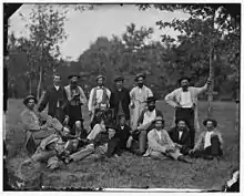 Prior to the US Civil War, Cline moved to Indiana, and during the War, he served as a scout with the 3rd Regiment Indiana Cavalry. Under the command of Major General Joseph Hooker,and, Major General George H Sharp[2] Cline was assigned to a newly formed core of scouts, where he rose to chief scout. One especially daring BMI scout, Sgt. Milton W. Cline, managed to attach himself to a Confederate cavalry captain and rode the entire length of Lee's lines a few days before the Battle of Chancellorsville. Sharpe requested that Federal military authorities send him for tens of thousands of dollars in captured Confederate currency, for him to give to his military scouts and civilian spies to use.[3][4] Cline's success with this group was mixed.(He was often called upon for the most daring missions) On the one hand, he accomplished "the deepest and longest infiltration of the Confederation Army recorded during the war,",[4] and was instrumental in obtaining key intelligence about orders being sent by Jefferson Davis,[5] but on the other hand, he was later blamed for the failure of an infiltration mission ( The Kilpatrick-Dahlgren Raid (February 28–March 3, 1864) in which all but one of the infiltrators was killed or captured.[4] Cline along with the rest of the 3rd Indiana Calvery were mustered out of the Union CIvil War ranks in August 1864.[6][7][8][9]