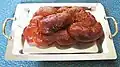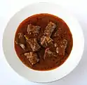 Ashkenazic pot roast, traditionally made with beef, various vegetables, tomato paste, and spices. | |