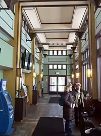 Groundbreaking for the facility occurred on June 28, 2004.[16] Present at the ceremony was Governor Jim Doyle, Herb Kohl and state Transportation Secretary Frank Busalacchi. Included in the $6.8 million budget were funds for the construction of the station and track improvements to reduce delays between Milwaukee and Chicago.[16] State and local economic development officials saw its construction as an opportunity for travelers from the Chicago metropolitan area to use the station as a rail link to reach Milwaukee Mitchell International Airport as an alternative for both Chicago's Midway and O'Hare airports.[15][16][17] The station opened for service on January 18, 2005, as a regular stop along Amtrak's Hiawatha Service.[18] At the time of its opening, this became only the fourth Amtrak station to have direct service to an airport, after Baltimore, Newark and Burbank.[18] In January 2006, the station was awarded an Urban Design Award from Milwaukee mayor Tom Barrett for its design as a "Prairie-style transportation symbol."[19]