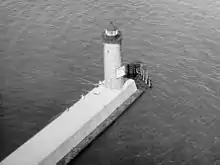 The Milwaukee Pierhead Light is an active lighthouse located in the Milwaukee harbor, just south of downtown.[8][9] This aid to navigation is a 'sister' of the Kenosha North Pier Light.[10]