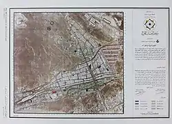 Mina (Arabic: مِنَى, romanized: Minā), also known as Muna (Arabic: مُنَى, romanized: Munā), and commonly known as the "City of the Tents"[1][2] is a valley located 8 kilometres (5 miles) southeast of the city of Mecca, in the district of Masha'er, Province of Makkah in the Hejazi region Saudi Arabia. Covering an area of approximately 20 km2 (7.7 sq mi), Mina incorporates the tents, the are of Jamarat, and the slaughterhouses just outside the tents.[1]