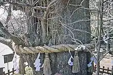 Under heavy snow on the evening of February 13, 1219 (Jōkyū 1, 27th day of the 1st month), Sanetomo was coming down from the Senior Shrine at Tsurugaoka Hachiman-gū after participating in a ceremony celebrating his nomination to Udaijin.[2] His nephew, Kugyō, came out from beside the stone stairway of the shrine and assassinated him.[2] For his act, he was himself beheaded a few hours later,[2] thus bringing the Seiwa Genji line of the Minamoto clan and their rule in Kamakura to a sudden end.