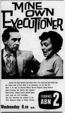 Mine Own Executioner is a 1960 Australian television play based on Nigel Balchin's 1945 novel of the same name. It was shot in Melbourne,[4] at a time when Australian drama was rare.[5]