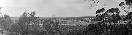 Mingenew was named after Mingenew Spring, an Aboriginal word recorded by European settlers in 1856,[2] possibly deriving from either the words Minga nu "the place of many ants and flies" or Mininoo "the place of many waters".[3] Mingenew and the surrounding Irwin District were first explored by the brothers Augustus Charles and Francis Thomas Gregory in August 1847, looking for suitable grazing land. Settlement of the district then occurred in the 1850s because it was ideal country for cattle.[2] The Midland railway line opened in August 1891, and private land was subdivided, followed in 1906 by subdivision of government land.[2] In 1906, the town of Mingenew was gazetted.[2]