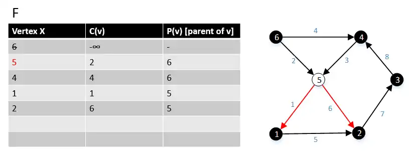 ![]() Next we move to the vertex 5 in the graph G, we found all the edge(5,w) ∈ E and their cost c(5,w), where w ∈ V. |