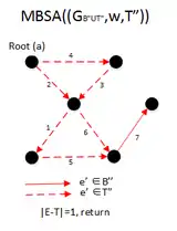 An arborescence of graph G is a directed tree of G which contains a directed path from a specified node L to each node of a subset V′ of V \{L}. Node L is called the root of arborescence. An arborescence is a spanning arborescence if V′ = V \{L}. MBST in this case is a spanning arborescence with the minimum bottleneck edge. An MBST in this case is called a Minimum Bottleneck Spanning Arborescence (MBSA).