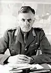 The Department of National Defence is headed by the deputy minister of national defence (the department's senior civil servant), while the Canadian Armed Forces are headed by the chief of the defence staff (the senior serving military officer).[7] Both are responsible to the minister of national defence. The King (represented by the governor general of Canada) is Commander-in-Chief of the Canadian Forces and has final authority on all orders and laws for the "defence of the realm".[8][9]
