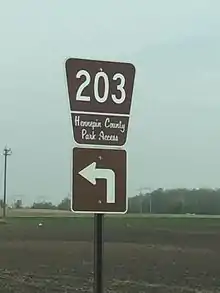 Park Access Road 203 begins at the junction of County 19 and County 117 in Hanover and runs along the east side of the Crow-Hassan Park Reserve to Territorial Road (County 116) in Rogers.