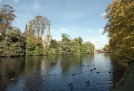 Minster Pool is a reservoir located between Bird Street and Dam Street in the heart of the city of Lichfield, Staffordshire in the United Kingdom. The pool lies directly south of Lichfield Cathedral and historically has been important to the defence of the Cathedral Close. The pool was originally formed in the 11th century when a boggy stream was dammed at its eastern end to drive a mill on Dam Street. The pool was used as a mill pond and fishery until 1856 when the mill was demolished; it has since been retained for public amenity.