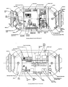 ![]() The docking module shown isolated in its basic configuration. Various additional external fixtures are not shown. | |