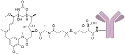 Mirvetuximab soravtansine, sold under the brand name Elahere, is a medication used as a treatment for fallopian tube cancer or primary peritoneal cancer.[1][2] Mirvetuximab soravtansine is a folate receptor alpha directed antibody and microtubule inhibitor conjugate.[2]