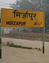 Mirzapur station code MZP is a railway station in Mirzapur district of the Indian state of Uttar Pradesh. It lies on the Howrah–Delhi main line and Howrah–Allahabad–Mumbai line. It serves Mirzapur and the surrounding areas.