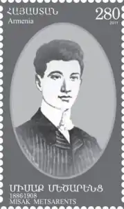 Misak Metsarents or Medzarents (Armenian: Միսաք Մեծարենց; 18 January 1886 – 5 July 1908) was a leading Western Armenian neo-romantic poet.